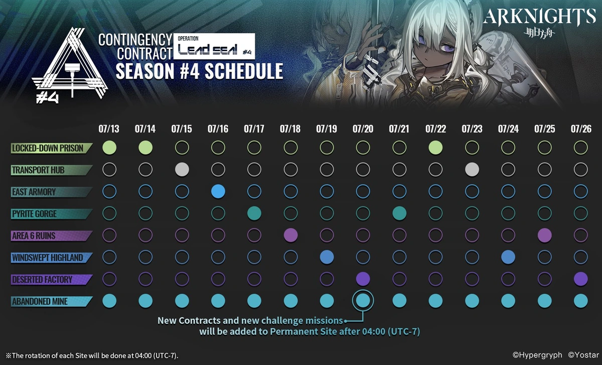 Contingency Contract #4 – Operation Lead Seal, often simply known as Contingency Contract #4 (CC4) or Contingency Contract Lead Seal (C.C. Lead Seal), is the sixth season of the namesake seasonal event in Arknights.