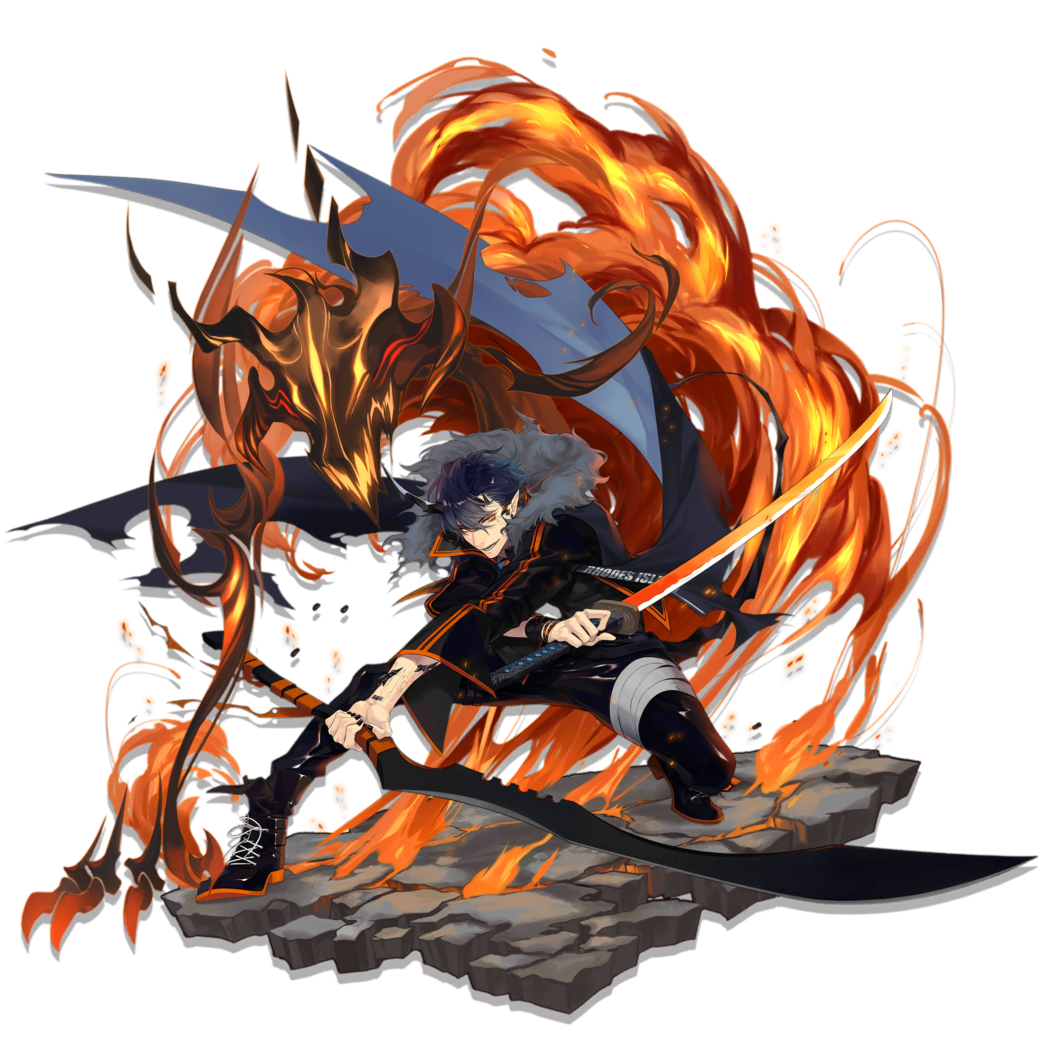 Flamebringer, Guard Operator of Rhodes Island, will bring ruination to enemies worthy of standing before him. He might just ditch if the enemies are too weak. | |