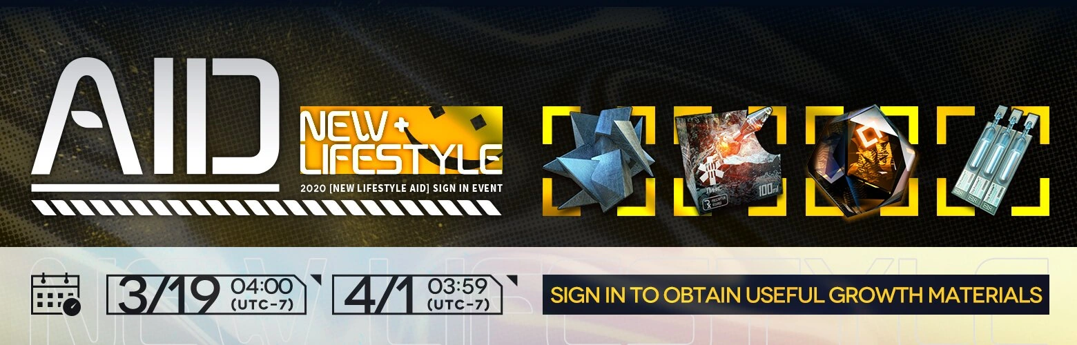 Lifestyle Aid is an event in the Global server of Arknights. During the event, login to the game for 7 days to claim the following rewards.